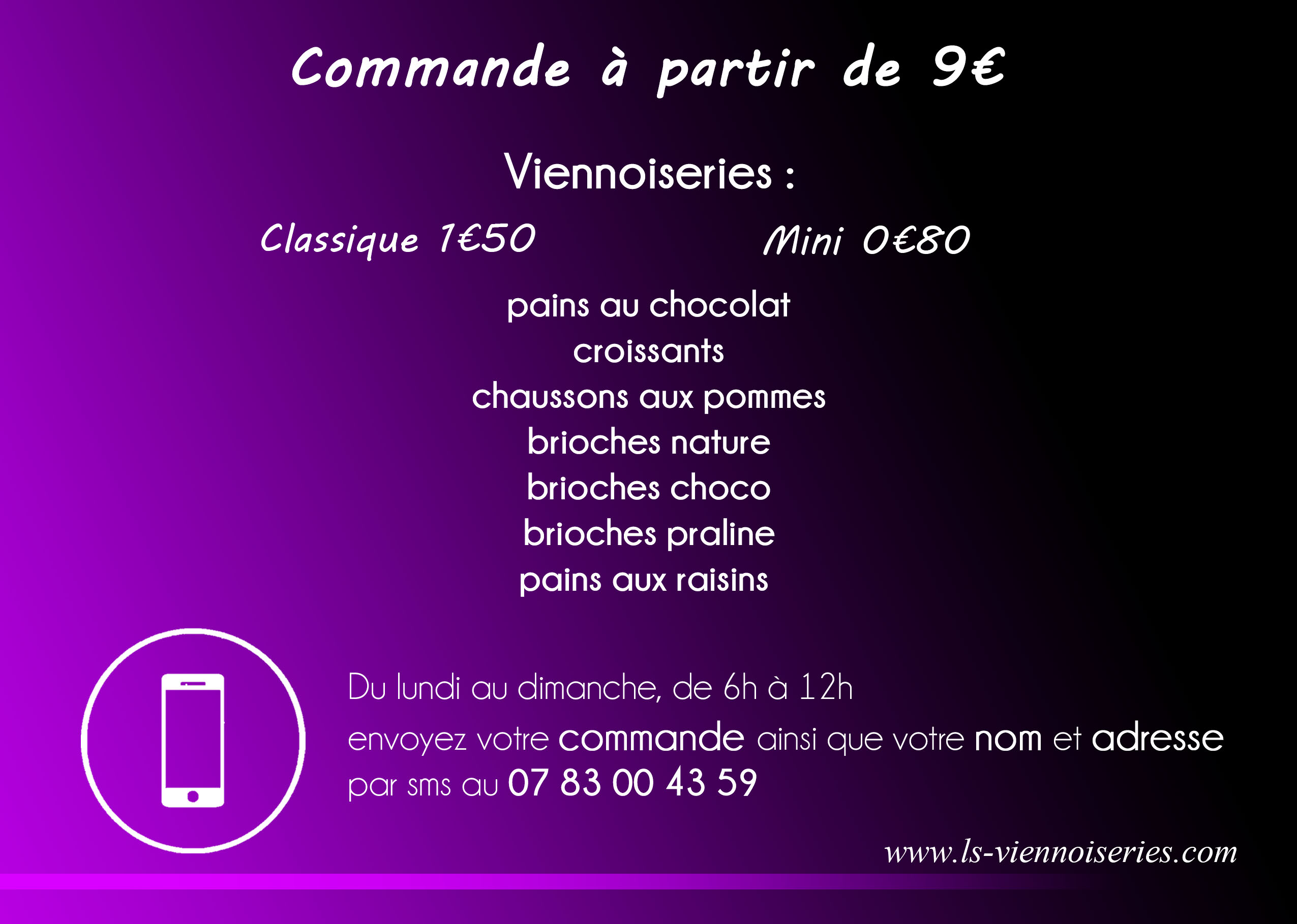 Besoin : Permettre aux clients de commander facilement (par SMS), connaître les tarifs, les horaires et la provenance des viennoiseries — sans site marchand, sans appli, juste un support tangible à garder sous la main.